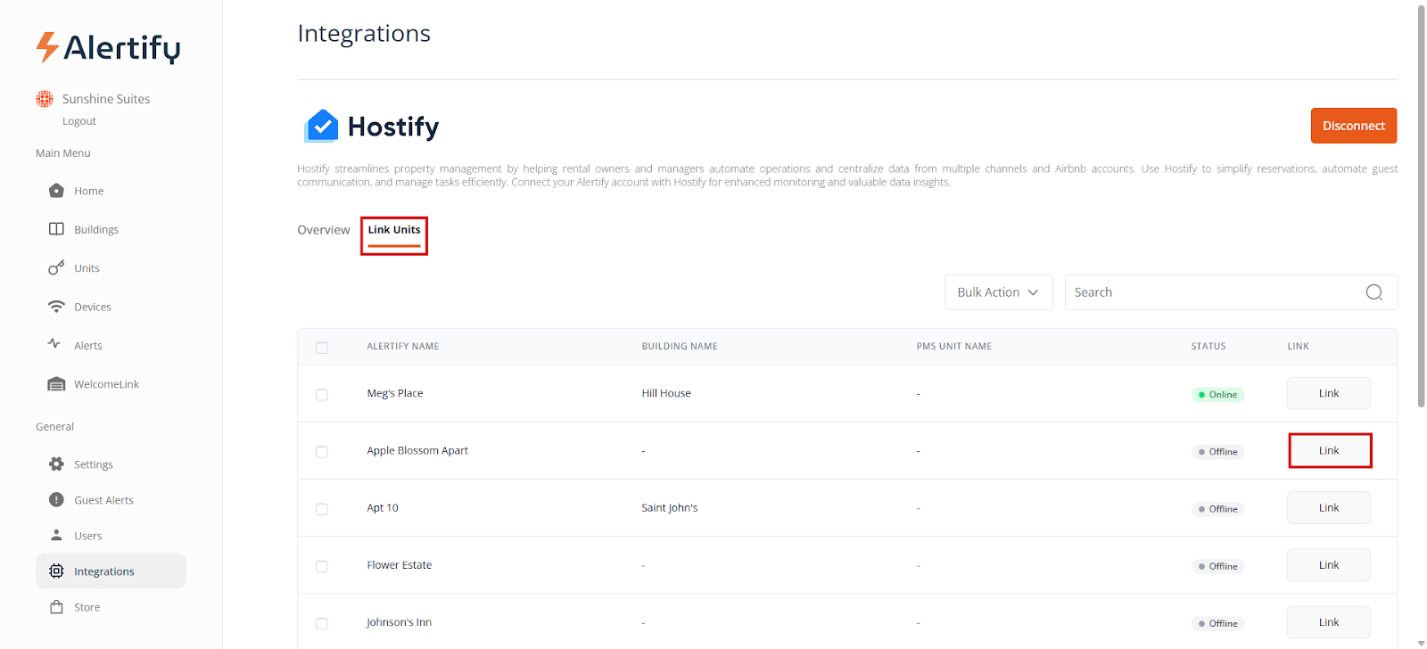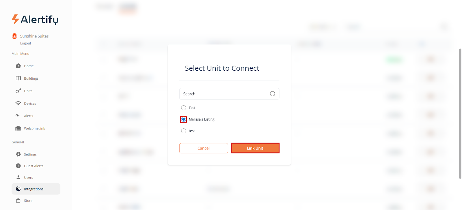 8. Your unit should now say “Unlink” which means it is successfully connected. Make sure that all of your units are linked to ensure your violation reports populate with guest data, guest alerts are active and the screening portal works.