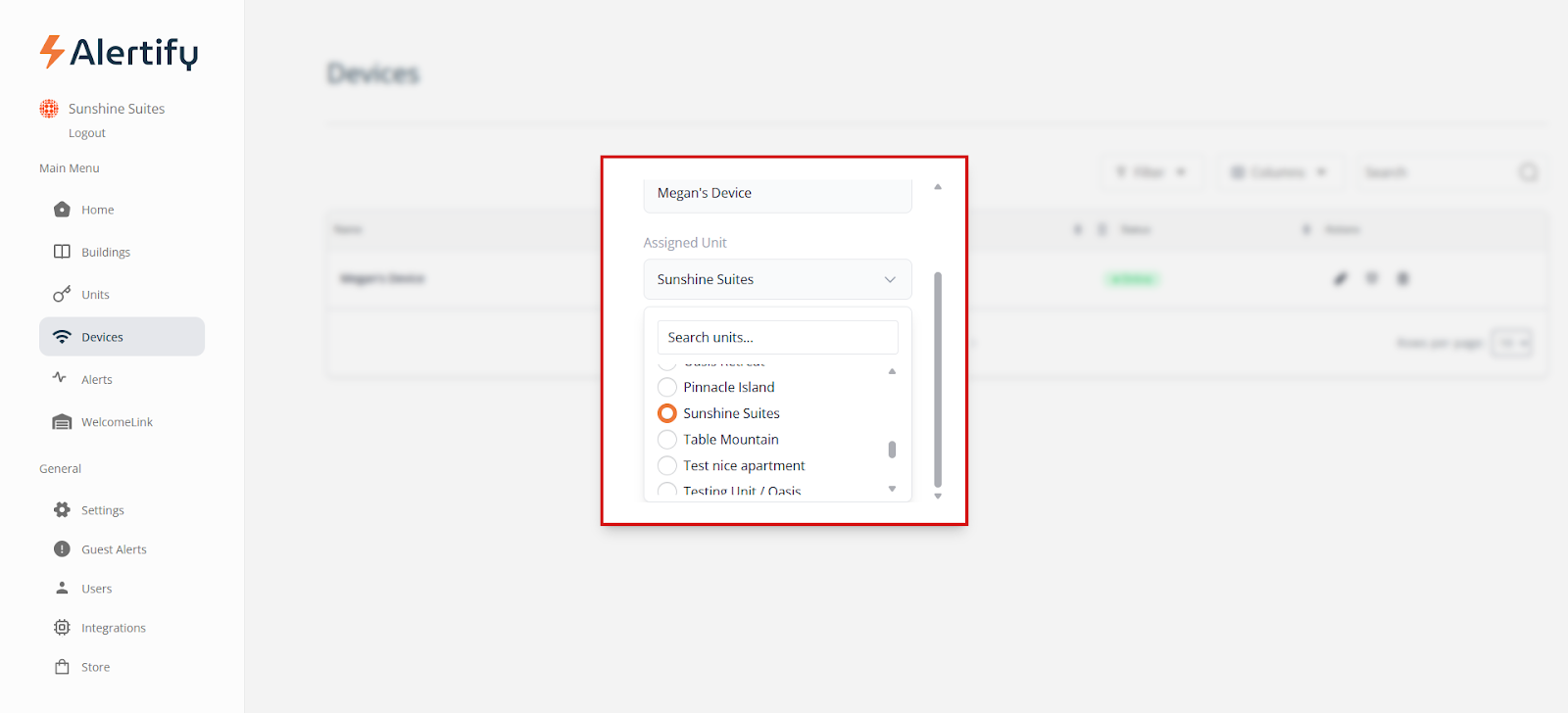 4. Under ‘Unit Name’ select the dropdown menu and click on the unit you want this device connected to