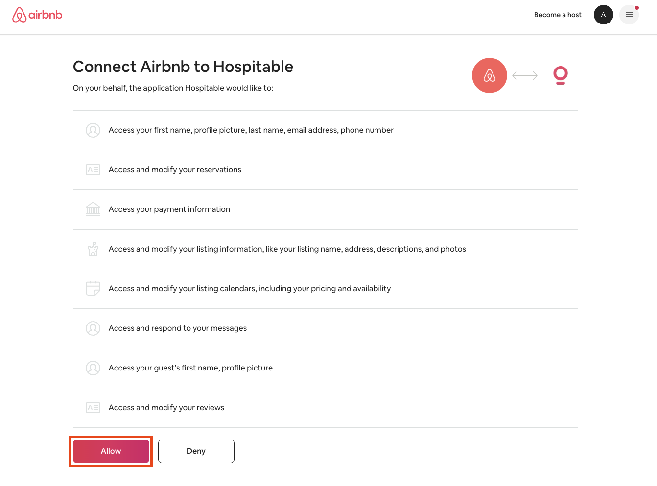 Click Allow to give Alertify access to your listing and booking details.