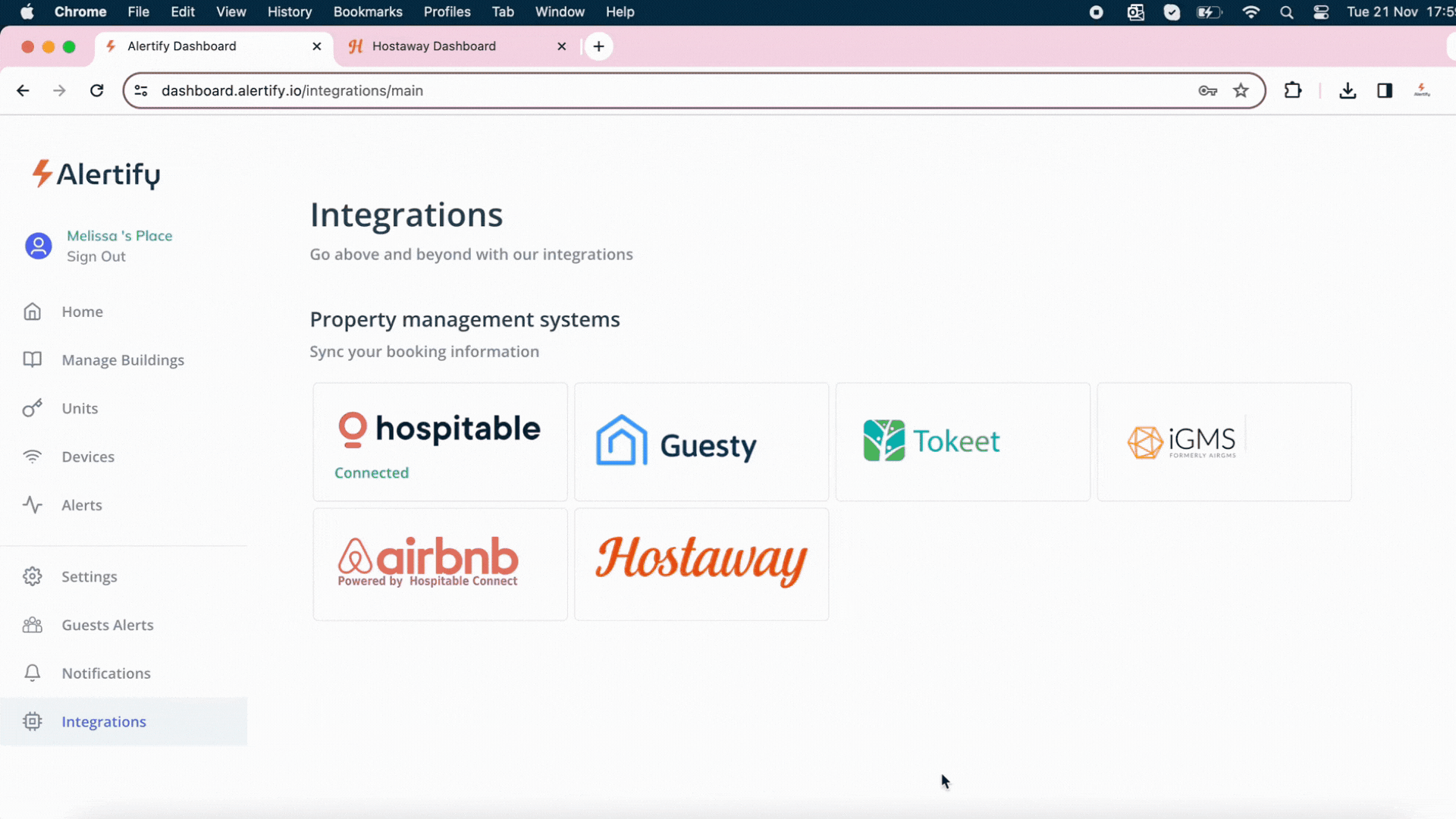 Use Alertify's integration functions to simplify Integrate Hospitable with Alertify so you know which guests are in your units, set Alertify to automatically message your guests if indoor smoking or excessive noise is detected, and have key guest ...