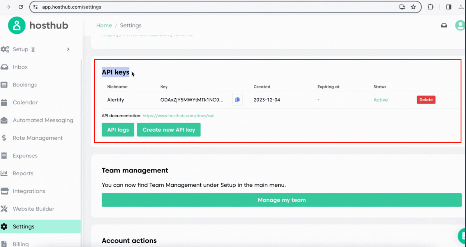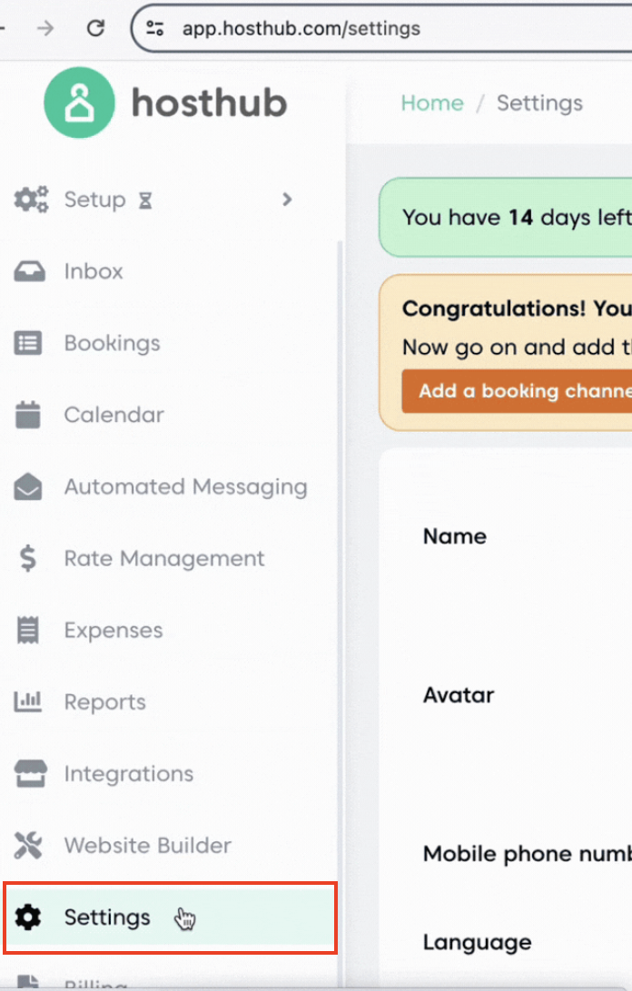 Log into your Hosthub account and go to 'Settings'