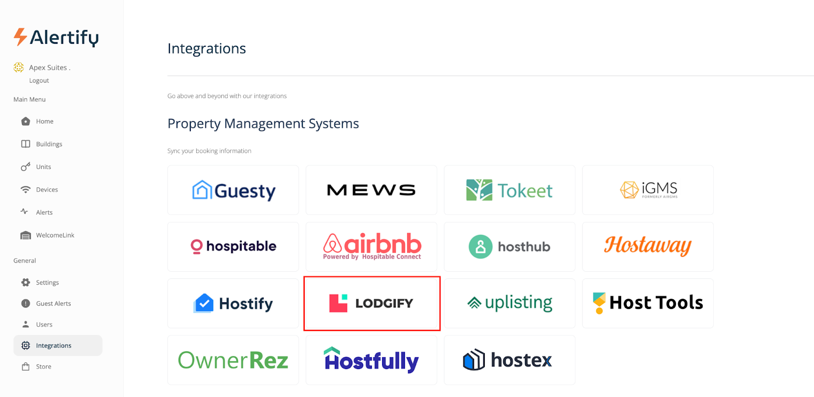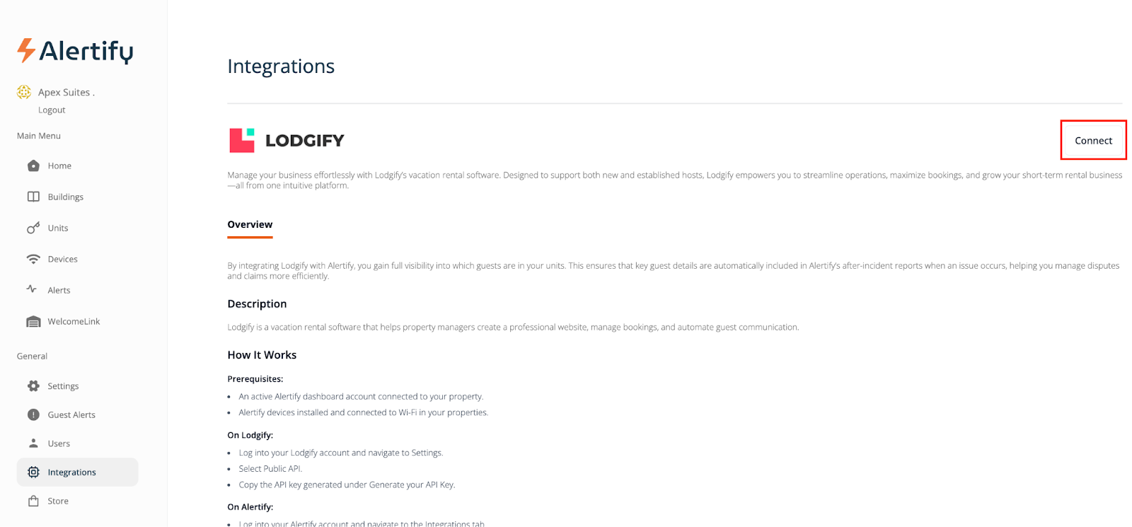 Step 2: Connect Lodgify to Alertify
