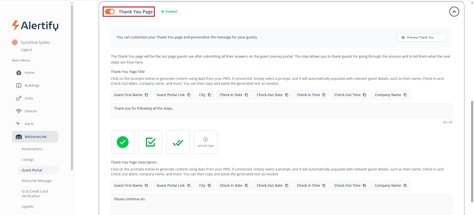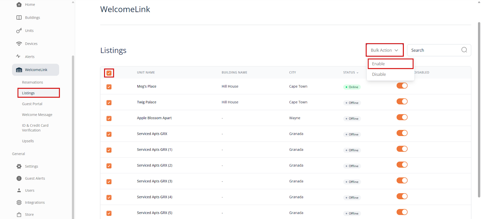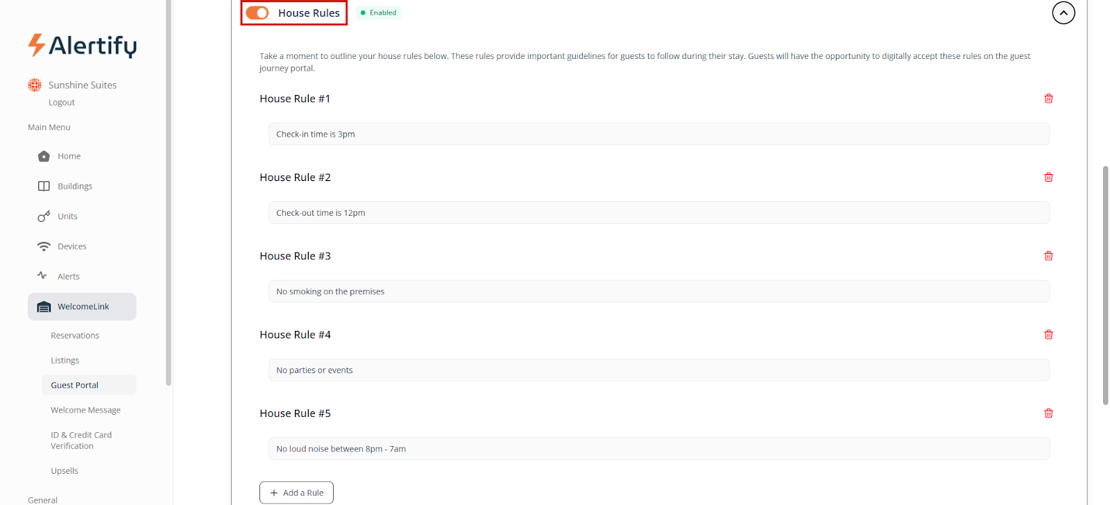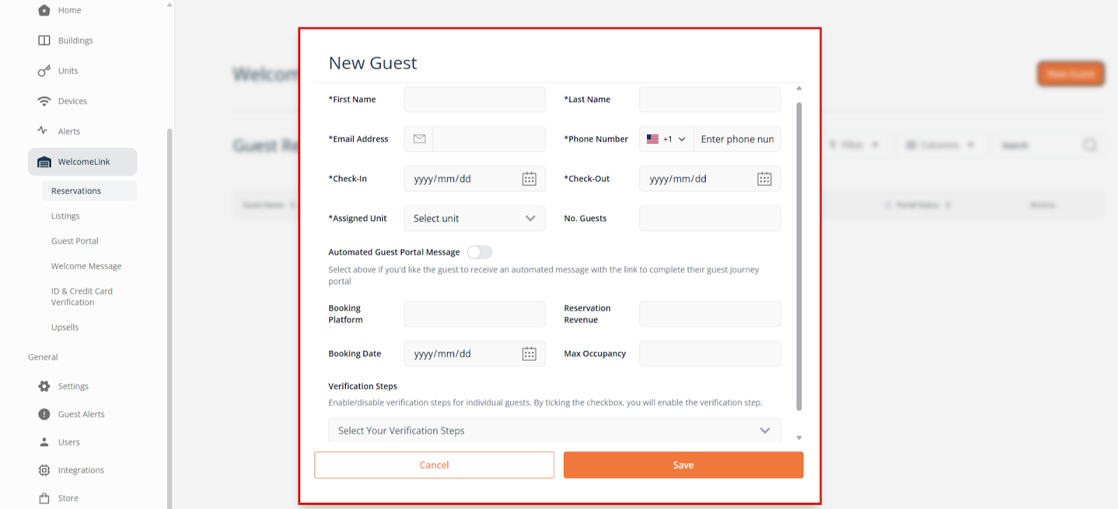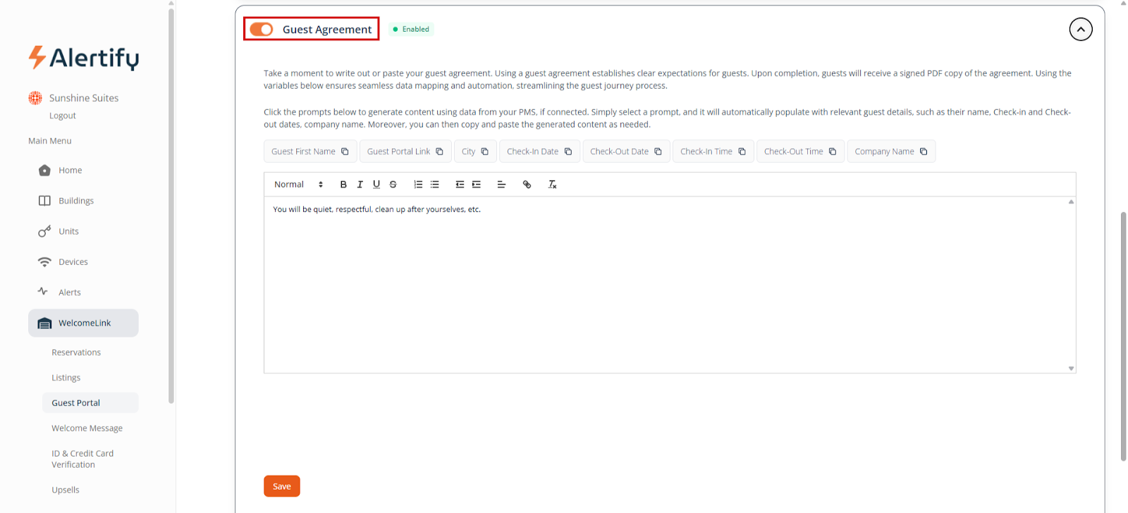 WelcomeLink can be used manually by creating a new guest to send the screening link to. To activate automatic Welcome Messages, you will need to be integrated with a PMS on your Alertify dashboard and have your units linked. Once you have done that, you can go to “WelcomeLink” and then “Listings” and activate all the listings you want guest verification for.
