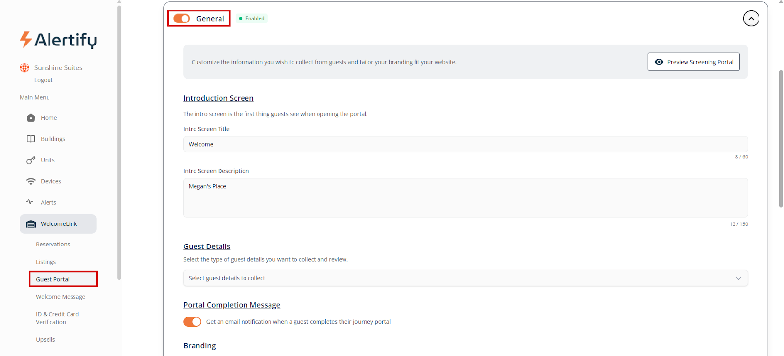 Once enabled, all new guests from your property management system (PMS) will receive the screening link.