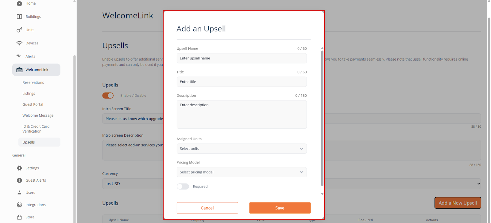 To create an upsell, simply click add a new upsell, give the upsell a name, a title, a description, assign it to a unit, and set a price. Guests can select and pay for these add-ons directly through the system, making the process effortless for both you and them.
