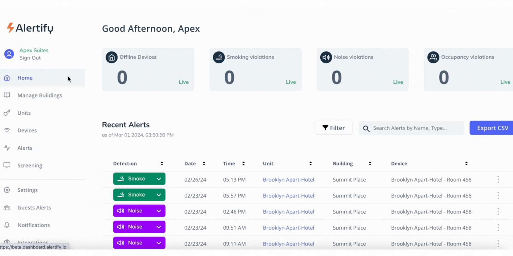 Use as funções de integração do Alertify para simplificar Integrar o Hostaway com o painel Alertifyâ€TMs significa que você poderá ver quando os hóspedes estão fazendo violações de ruído, fumar ou ocupação. Alertify notifica-o prontamente sobre esses ...